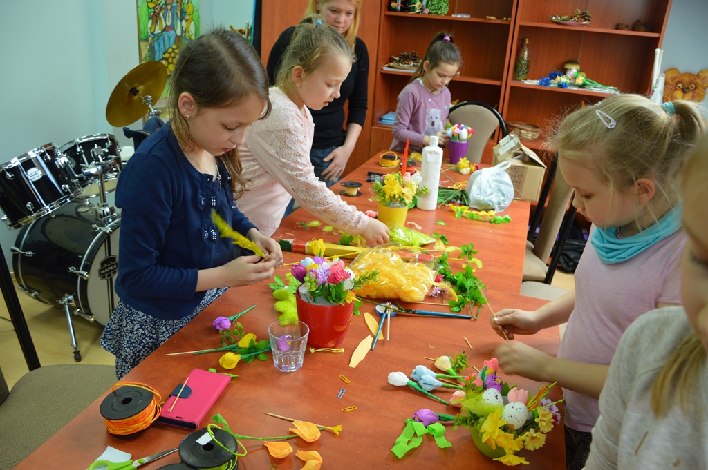 Przed nami kolejna Wielkanoc. Święta, które każdemu na pewno kojarzą się z zapachem świeżo upieczonego mazurka, sernika, ale także z pisankami, palemkami i Śmigusem-dyngusem. Z początkiem kwietnia w Gminnym Ośrodku Kultury ruszyły przygotowania do obchodów zbliżającej się Wielkanocy. Dzieci poznawały zwyczaje związane z tym świętem, charakterystyczne dla naszej rodzimej kultury. W dniach 5 i 10 kwietnia odbyły się warsztaty plastyczne, które cieszyły się ogromnym zainteresowaniem dziewczynek i chłopców. Dzieci własnoręcznie wykonały kolorowe stroiki oraz prześliczne kartki świąteczne. Pracowały przy tym bardzo skrupulatnie, wkładając w swoje wytwory wiele serca i wysiłku. Wszystko po to, by jak najpiękniej uczcić nadchodzące Święta Wielkanocne.