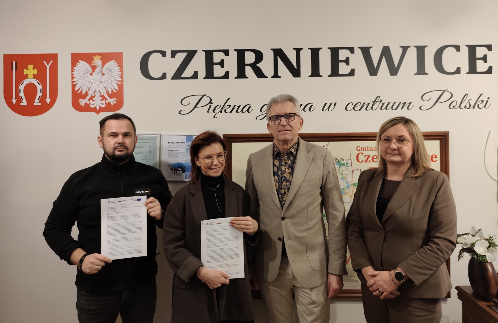 12 stycznia podpisano dwie umowy na realizację pierwszego w tym roku zdania inwestycyjnego: „Budowa sieci kanalizacji sanitarnej na terenie gminy Czerniewice wraz z budową sieci wodociągowej w miejscowości Podkońska Wola”.
