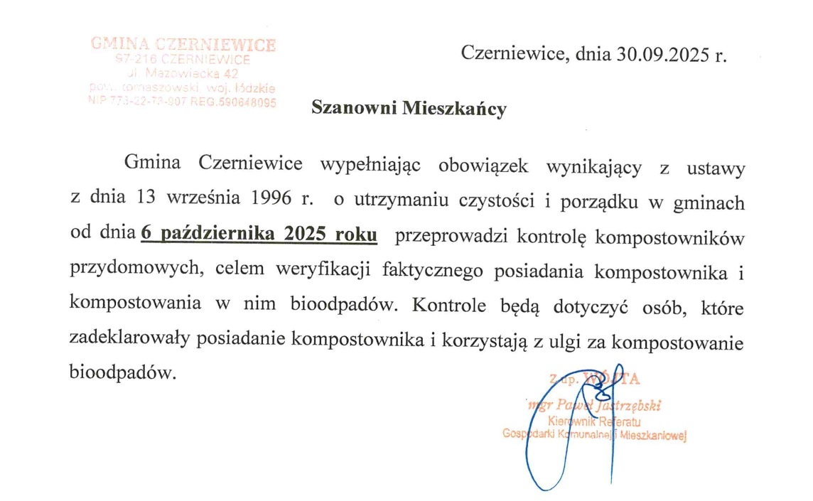 Informacja - kontrola kompostowników przydomowych