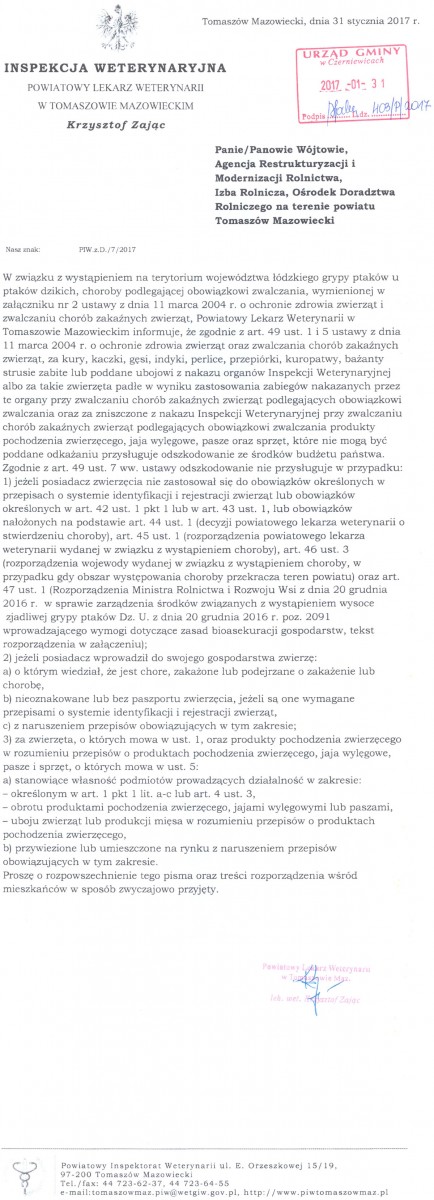 Do pobrania: Rozporządzenie Ministra Rolnictwa i Rozwoju Wsi z dnia 20 grudnia 2016 r. w sprawie zarządzenia środków związanych z wystąpieniemwysoce zjadliwej grypy ptaków