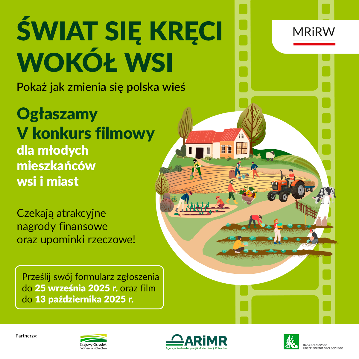 Zapraszamy do udziału w V ogólnopolskim, amatorskim konkursie filmowym „Świat się kręci wokół wsi”. Nagraj i przyślij swój film. Pokaż jak zmienia się polska wieś. Konkurs jest skierowany do młodych mieszkańców wsi i miast, w wieku od 16 do 30 roku życia.