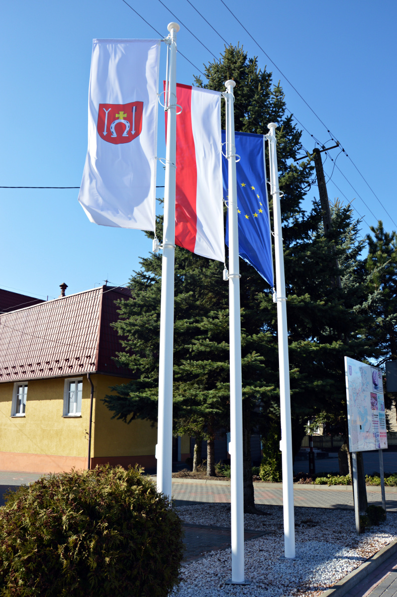 W ostatnim czasie zakupiono trzy maszty, które ustawiono przed budynkiem Urzędu Gminy. Zawieszono na nich flagi: gminy, Polski i Unii Europejskiej.