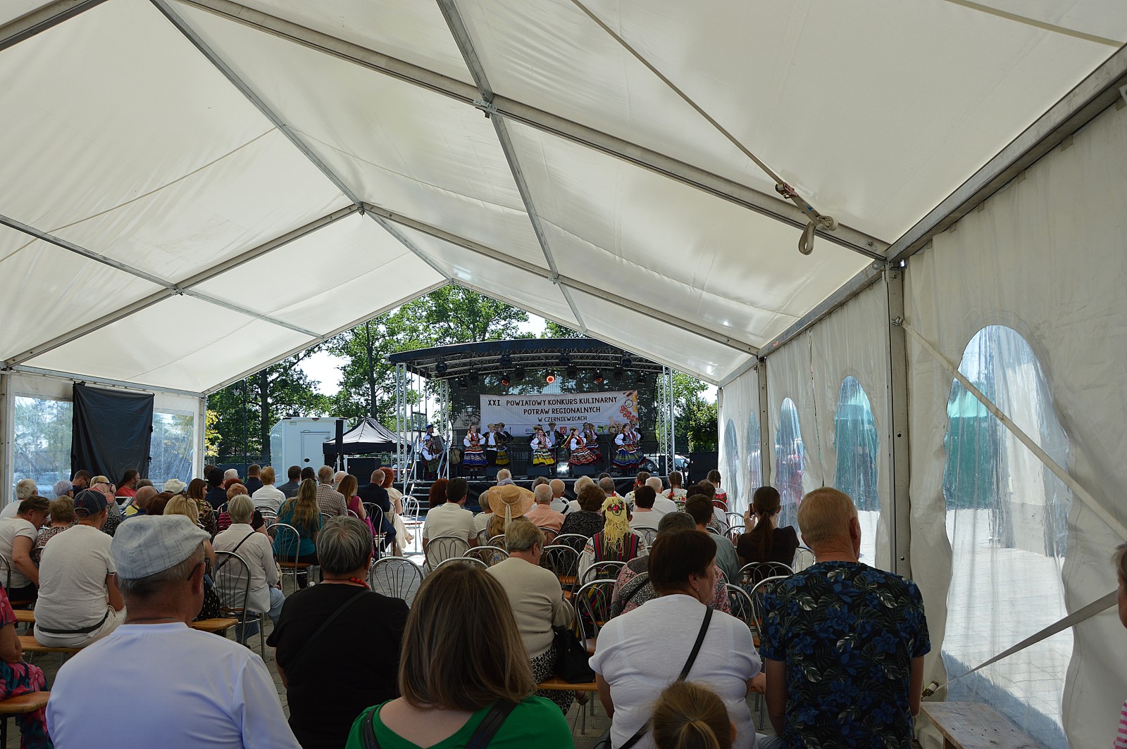 W międzyczasie reprezentacje gmin powiatu tomaszowskiego przygotowywały stoiska z potrawami do oceny konkursowej. Były to: KGW Marianka – gmina Lubochnia, KGW Rokiciny – gmina Rokiciny, KGW Grotowice – gmina Rzeczyca, KGW Twarda – gmina Tomaszów Mazowiecki, „Dzierlatki” – miasto Tomaszów Mazowiecki, KGW Skrzynki – gmina Ujazd i KGW Żelechlinek – gmina Żelechlinek. Naszą gminę reprezentowało KGW „Pokolenia razem” z Podkonic Dużych, które nie było oceniane przez jury.
