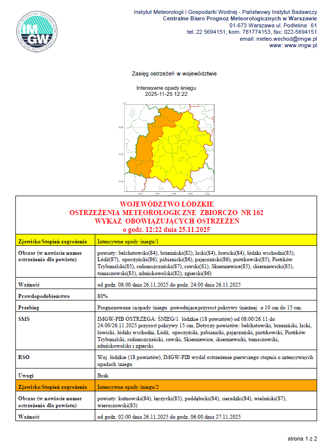 Dla mieszkańca » Aktualności » Ostrzeżenie meteorologiczne