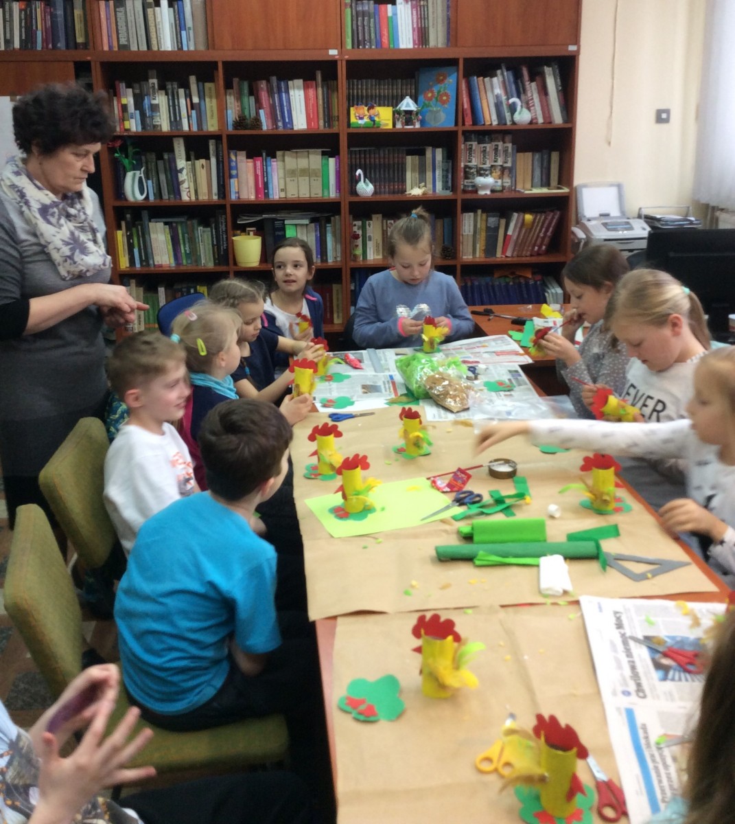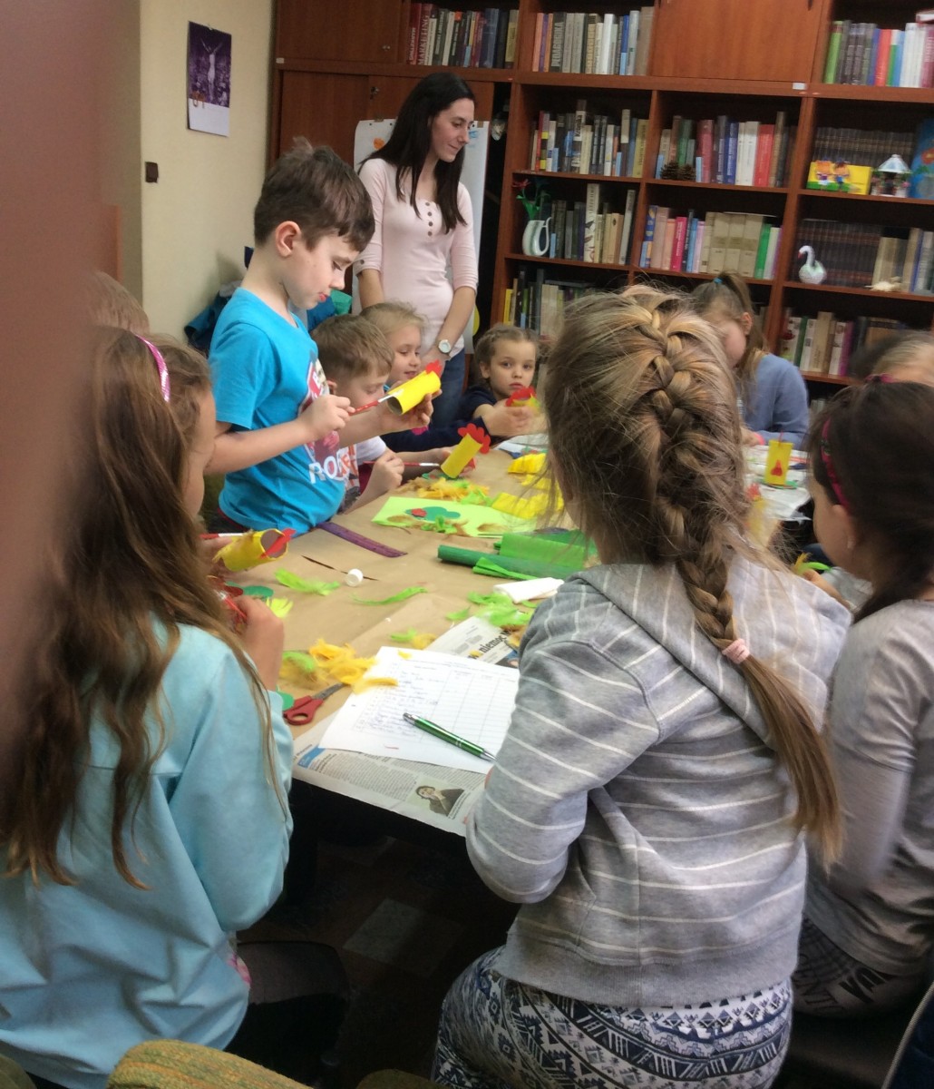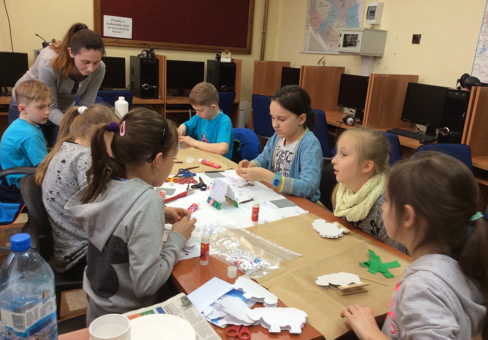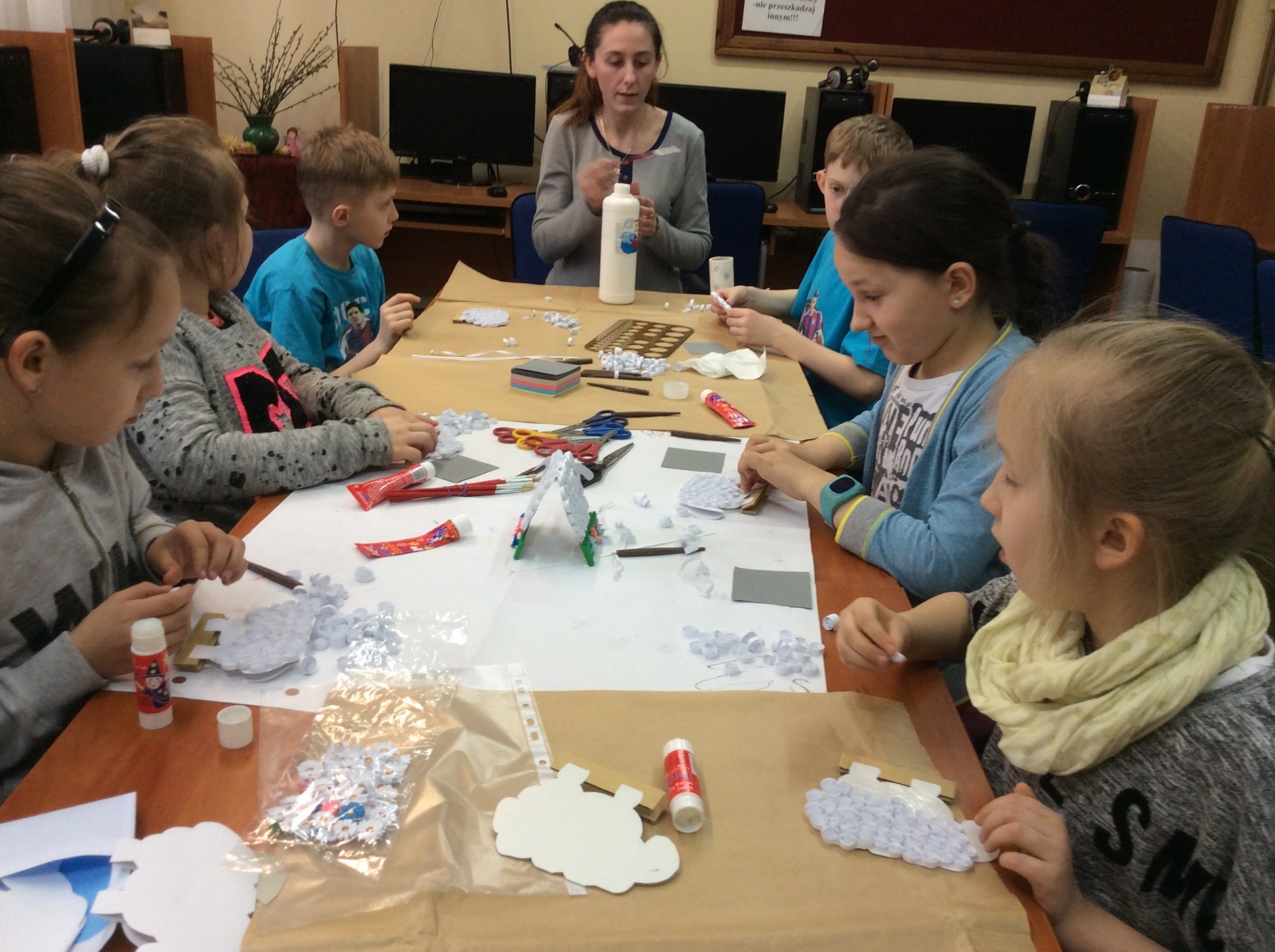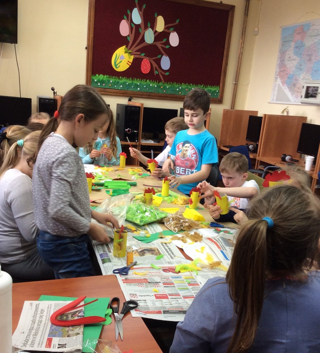 Robienie ozdób świątecznych z dziećmi jest wspaniałą tradycją, którą warto kultywować. Okazją do tego były zajęcia zorganizowane w Gminnej Bibliotece Publicznej w Czerniewicach: 29 marca i 3 kwietnia br. Na zajęciach wykonano baranki wielkanocne metodą „quilingu” oraz kurczaczki z kartonowych rurek. „Quiling”; to technika papieroplastyki polegająca na zwijaniu kolorowych pasków papieru w kształt spiralnej sprężyny. Umiejętność ta została nabyta na zajęciach, prowadzonych w bibliotece w czasie wakacji przez Sylwię Goździk. Często jest wykorzystywana, przy okazji róznych zajęć i warsztatów, chociaż jest pracochłonna, ale efekt końcowy wynagradza trud. Tak było i tym razem, bo na wyklejenie baranka wielkanocnego każde dziecko zużyło ok. 100 pasków. Dzieci biorące udział po raz pierwszy zostały zapoznane z techniką zwijania pasków w krążki, a także formowania ich. Dużym powodzeniem cieszyły się również kurczaczki z tekturowych rurek, ozdobione kolorowymi piórkami. W spotkaniach wzięło udział 15 osób, dzieci w wieku 6-10 lat. W czasie zajęć panowała koleżeńska atmosfera. Uczestnicy zajęć, bardziej zaznajomieni z techniką pomagali młodszym i służyli radą. Zajęcia odbyły się bezpłatnie. Własnoręcznie wykonane ozdoby, dały dzieciom dużo radości i będą na pewno miłym świątecznym akcentem.