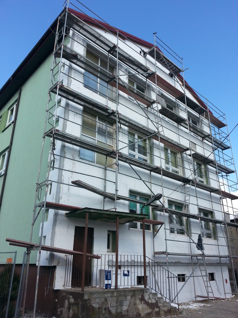 - robót termomodernizacyjnych polegających na dociepleniu ścian zewnętrznych, dociepleniu stropodachu, wymianę stolarki okiennej oraz wymianę drzwi zewnętrznych;
