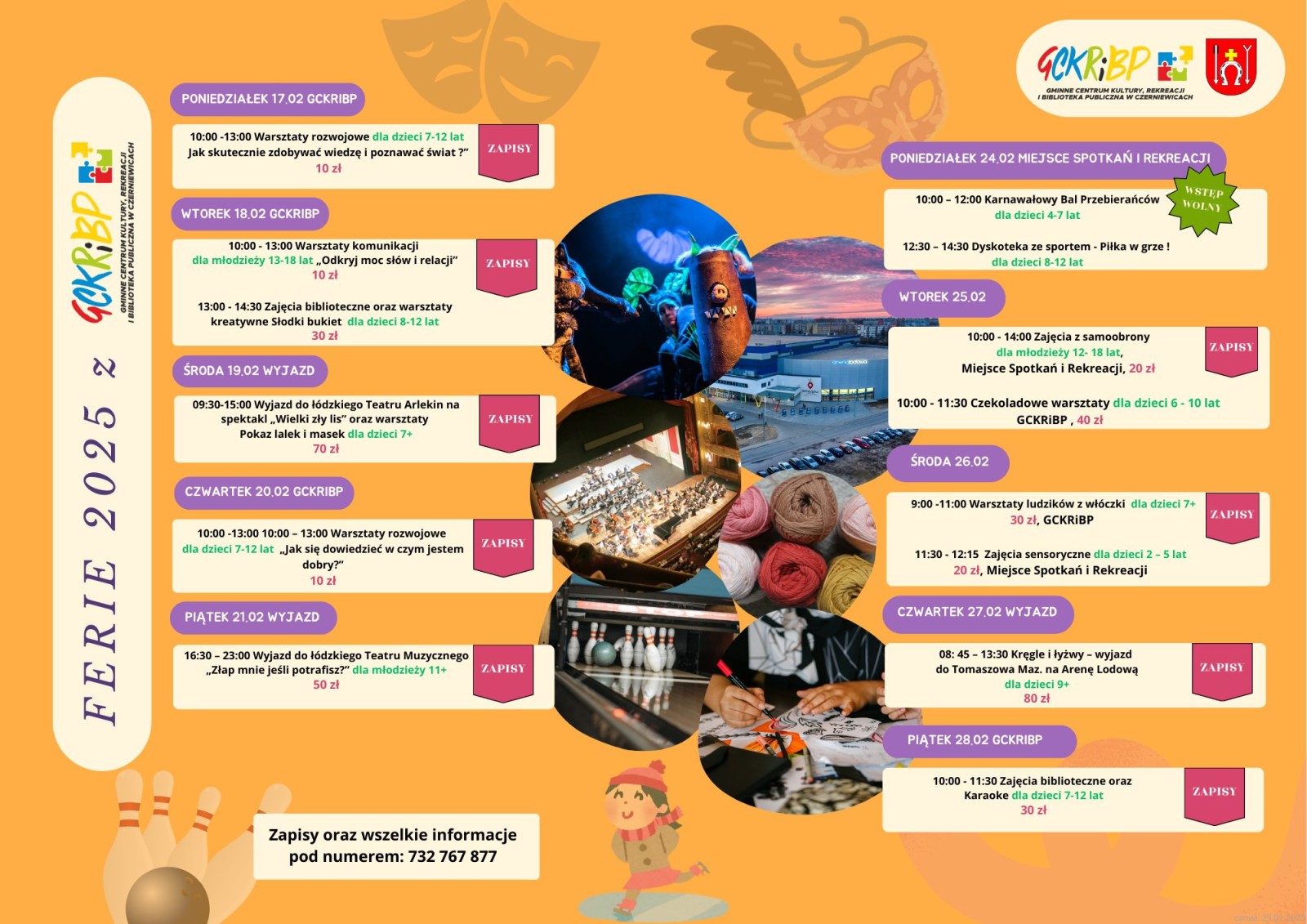 Ferie zimowe przypadły nam w tym roku w ostatnim terminie, więc ledwo się skończyły a tu w powietrzu już czuć pierwsze oznaki wiosny. Blisko osiemdziesięcioro dzieci i młodzieży z gminy Czerniewice skorzystało z oferty przygotowanej w ramach ,,Ferii z GCKRiBP”. Zajęcia, warsztaty, wycieczki odbywały się przez całe dwa tygodnie przerwy w nauce- łącznie 14 różnych atrakcji. Najmłodsi mogli uczestniczyć w czekoladowych i cukierkowych warsztatach, wiązali ludziki z włóczki, śpiewali karaoke, mieli okazję poznać sekrety biblioteki i książkowych bohaterów, bawili się na sensoryce i na karnawałowych szaleństwach a młodzież uczyła się samoobrony. Ważnym elementem oferty były zajęcia rozwoju osobistego dla dzieci i młodzieży: z budowania poczucia własnej wartości, z komunikacji, jak skutecznie zdobywać wiedzę oraz o radzeniu sobie z trudnościami. Całości atrakcji dopełniły trzy wycieczki: od łódzkiego Teatru Lalek Arlekin na przedstawienie wraz z warsztatami lalkowymi które grają na scenie, na musical w Teatrze Muzycznym w Łodzi oraz do Areny Lodowej w Tomaszowie Maz. na kręgle i lodowe szaleństwo na ślizgawce. Zajęcia były dofinansowane ze środków Gminnej Komisji Rozwiązywania Problemów Alkoholowych.