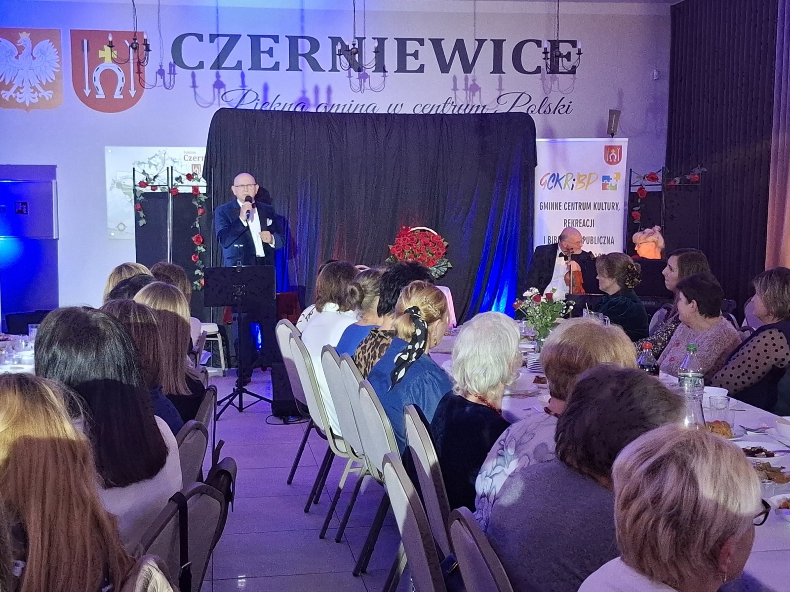 Koncert ,,Przynoszę Tobie siedem czerwonych róż" to prezent dla Pań podczas Gminnych Obchodów Dnia Kobiet w Czerniewicach. W Miejscu Spotkań i Rekreacji w czerniewickim parku zgromadziło się blisko sto pięćdziesiąt pięknych pań, rezolutnych panienek oraz dostojnych seniorek reprezentujących wszystkie środowiska w gminie, aby we wspólnym gronie obchodzić swoje święto. Imprezę rozpoczął Dyrektor Gminnego Centrum Kultury, Rekreacji i Biblioteki Publicznej Jacek Zakrzewski, a życzenia pełnie ciepłych słów uznania dla kobiet złożyli gospodarz gminy Wójt Andrzej Bednarek wraz z Przewodniczącym Rady Gminy Jarosławem Kępą. Wieczór pełen muzyki, humoru oraz niekłamanego podziwu dla kobiet, zafundowali artyści znani ze scen muzycznych i teatralnych oraz popularni uczestnicy wokalnych programów telewizyjnych: Anna Potyrała Listwon - sopran, Andrzej Wojda - bas, Tadeusz Melon - skrzypce, Małgorzata Piszek - piano oraz prowadzący koncert Ryszard Nowaczewski.