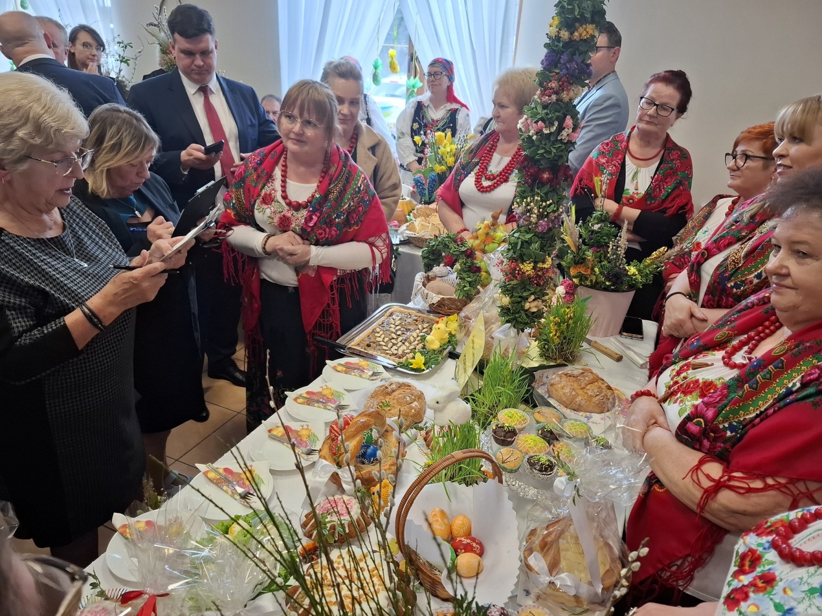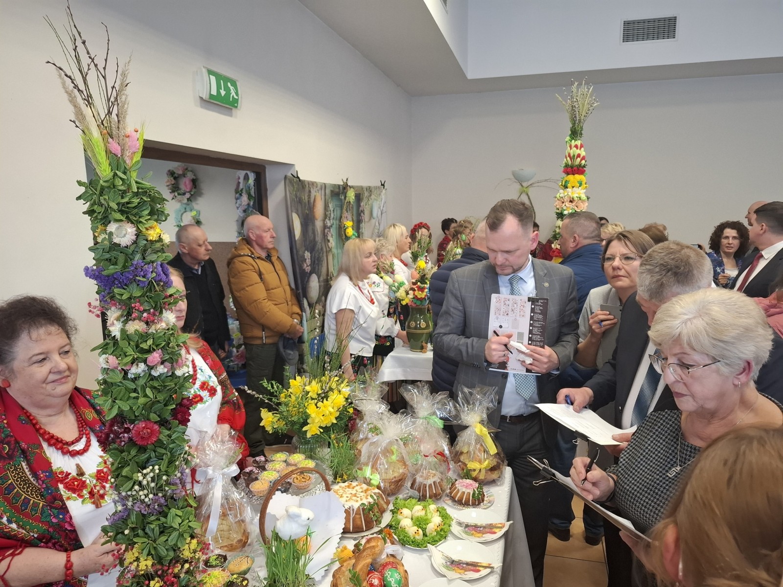 Pisanki, autorstwa p. Heleny, to zdobione gorącym woskiem jajka symbolizujące odrodzenie do życia. Okazała palma, którą uwiły Panie Beata, Halina oraz Pani Irena, wyróżniała się wykorzystaniem suszonych kwiatów polnych które obok tradycyjnych bazi i borówki dodawały jej uroku. W przygotowaniach do konkursu uczestniczyły wszystkie Panie z Koła Gospodyń. W konkursie, reprezentantkom gminy kibicowali Wójt Andrzej Bednarek oraz Dyrektor Gminnego Centrum Kultury, Rekreacji i Biblioteki Publicznej Jacek Zakrzewski. Gratulujemy!