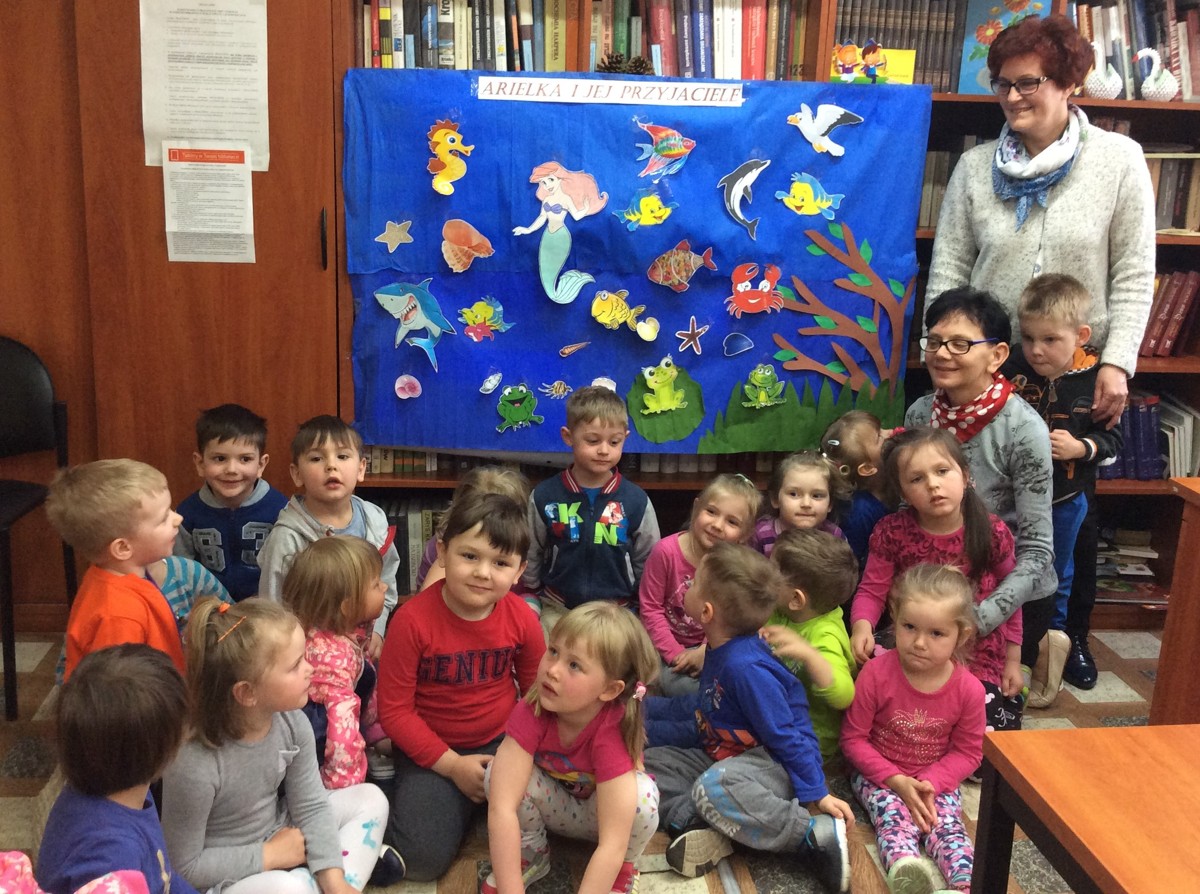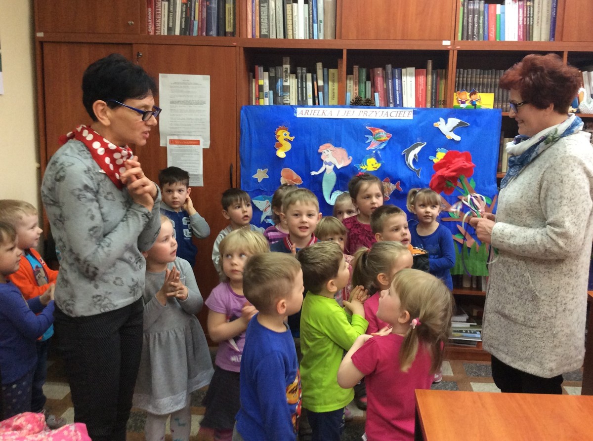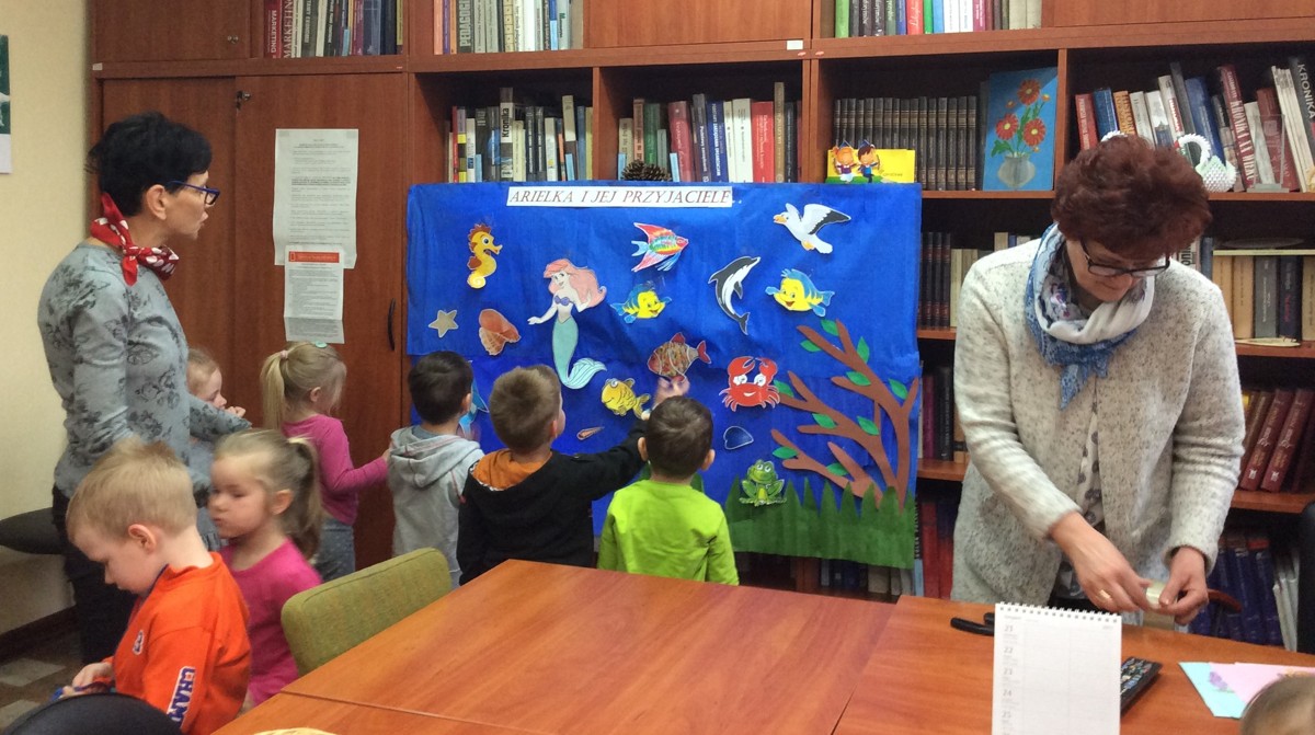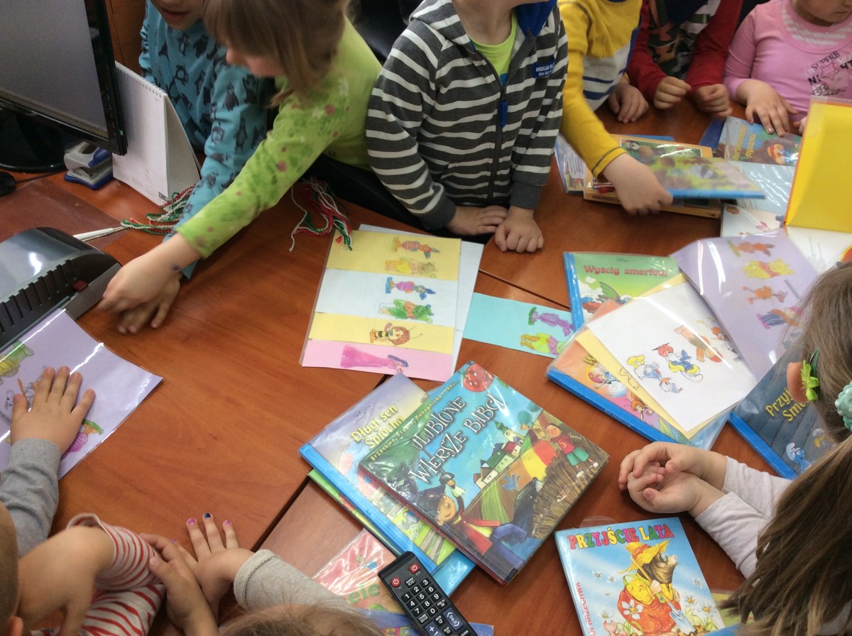 Jego głównym celem jest podkreślanie roli czytania i bibliotek w poprawie jakości życia, edukacji oraz zwiększenie prestiżu zawodu bibliotekarza i zainteresowania książką szerokich kręgów społeczeństwa. Jak co roku zorganizowaliśmy szereg atrakcji w bibliotece. 8 maja 2017 r. gościliśmy grupę starszaków z miejscowego przedszkola. Dzieci zapoznały się z organizacją biblioteki ze szczególnym wskazaniem na zbiory dla dzieci. Poznały zasady wypożyczania książek i ich poszanowanie. Przedszkolaki buszowały w ulubionych bajkach i opowiadaniach dla dzieci. Wspólnie zrobiliśmy kolorowe zakładki, które dzieci zabrały do domu. Kolejne zajęcia zostały zorganizowane 15 maja 2017 r. Tym razem była młodsza grupa przedszkolaków z Panią Olą Kępa. Było głośne czytanie bajki "Arielka, Mała Syrenka" i zabawa ruchowa, pływanie rybek w morzu. Powstała piękna praca plastyczna, "Podwodny świat Arielki". Na koniec dzieci zostały obdarowane zakładkami do książek. Dziękuję Pani Oli i przedszkolakom za życzenia i kwiaty. Nasi goście żegnając się zapewnili, że ponownie przyjdą z rodzicami, by zapisać się i wypożyczyć książki. Obchodom Tygodnia bibliotek towarzyszyła wystawa książkowa „150 rocznica urodzin Władysława Stanisława Reymonta, oraz akcja „Książka za darmo” w ramach której można było wziąć za darmo wybrane książki.