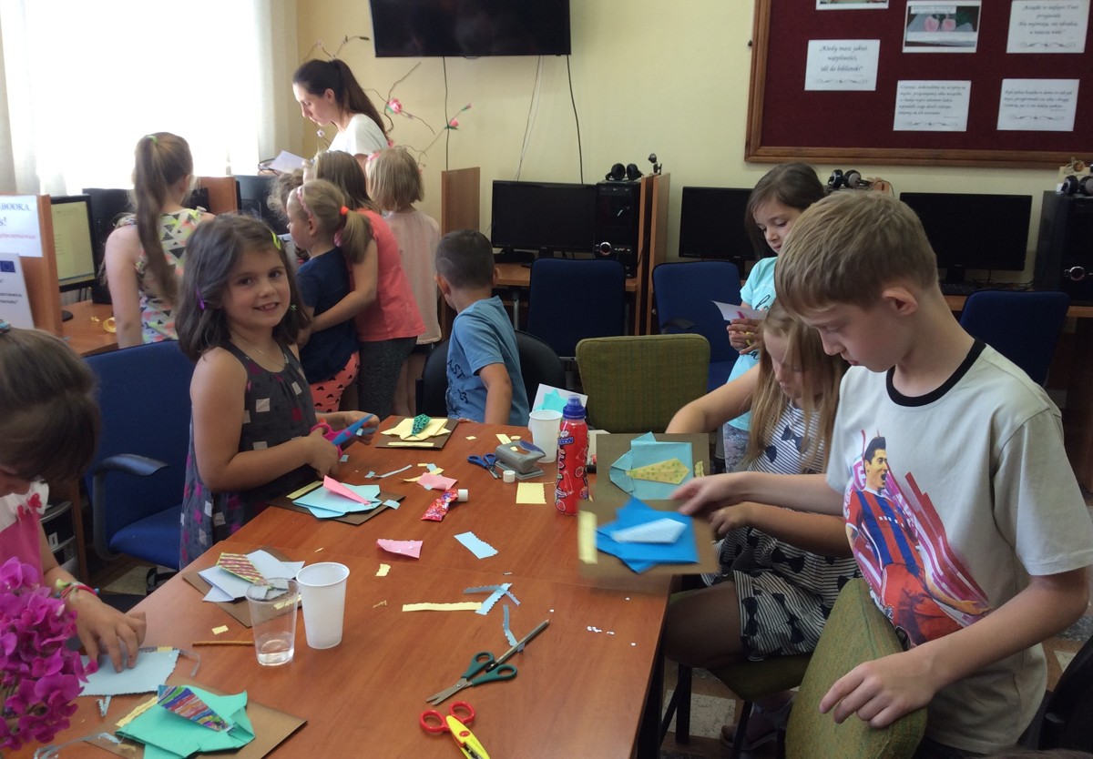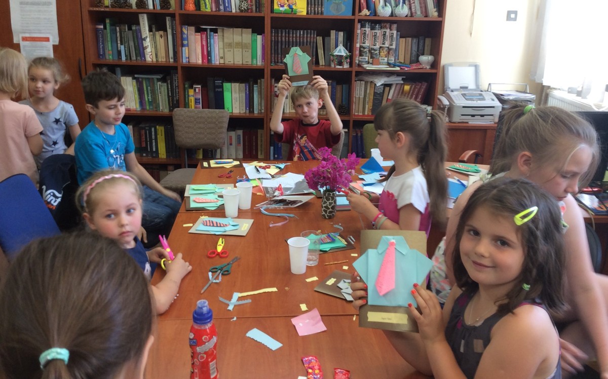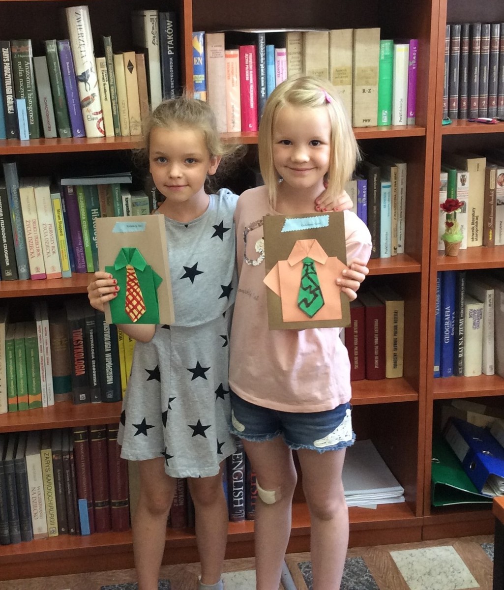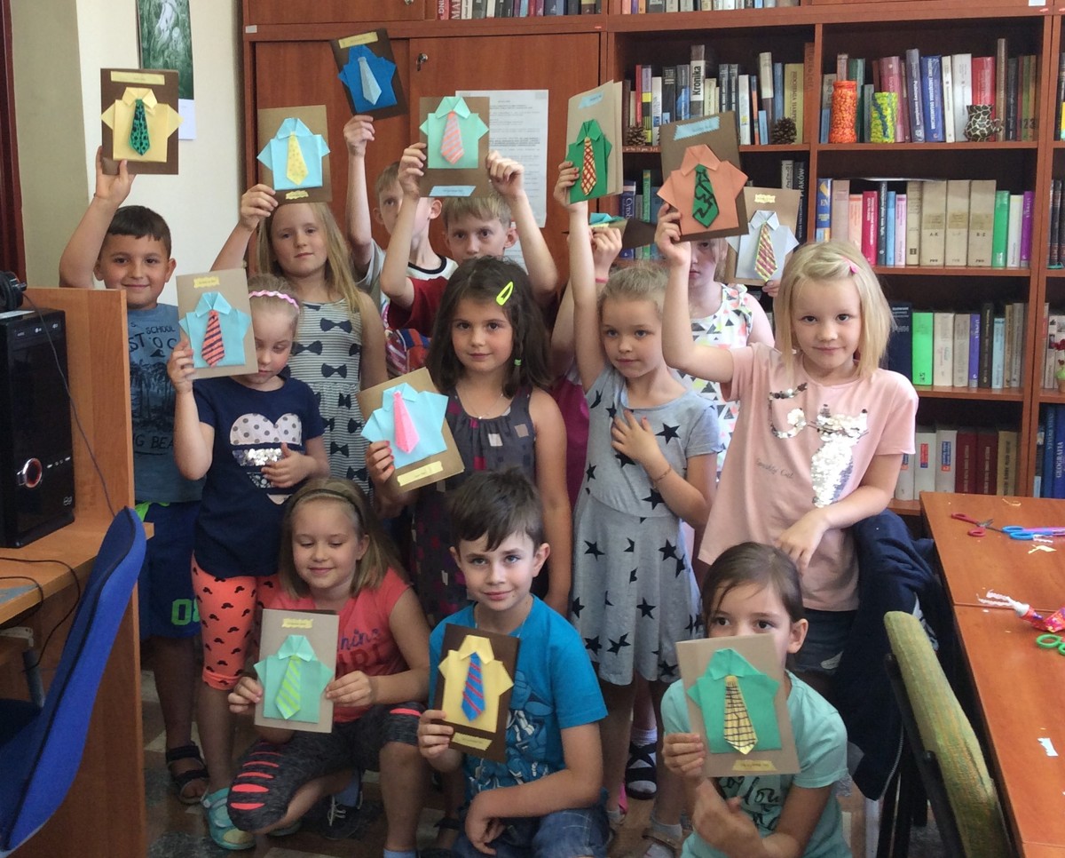 Dzień Ojca - w Polsce jest świętem dość młodym, bo obchodzonym corocznie 23 czerwca od roku 1965 r. Dzień Ojca nie jest tak popularnym świętem jak Dzień Matki, dlatego warto aby dzieci o nim pamiętały. Gminna Biblioteka Publiczna w Czerniewicach na tą okoliczność zorganizowała warsztaty plastyczne dla najmłodszych. Przez dwa dni, 21 i 22 czerwca 2017 r. przygotowywaliśmy się do tego święta. W trakcie zajęć dzieci zrobiły ładne laurki z wpisanymi życzeniami i breloczki do kluczyków. Było dużo składania i klejenia aby powstała piękna koszula z krawatem, która była motywem laurki. Jak ma być prezent dla taty, to oczywiście – samochodzik. Breloczki do kluczy zostały wykonane z dekoracyjnej pianki. Każde dziecko włożyło wiele wysiłku staranności, aby jego praca była najładniejsza. Przygotowane prezenty dzieci zabrały do domu, by wręczyć je swoim tatusiom, dając tym wyraz wdzięczności, szacunku i miłości.