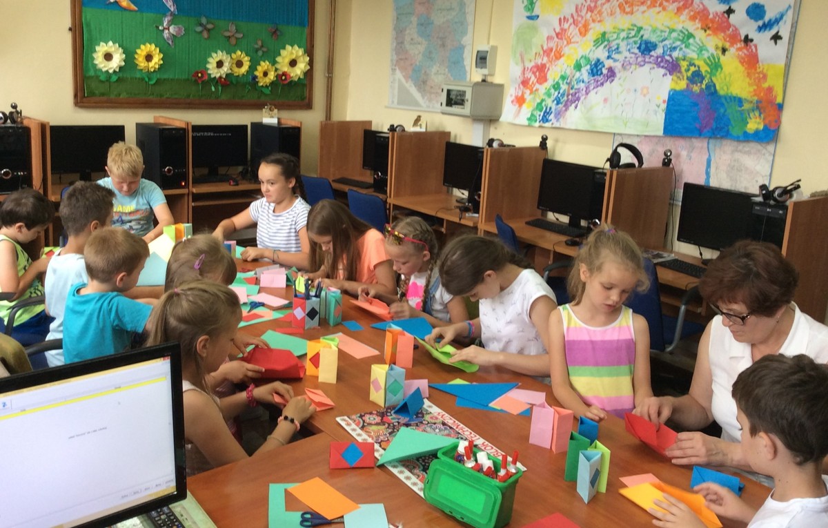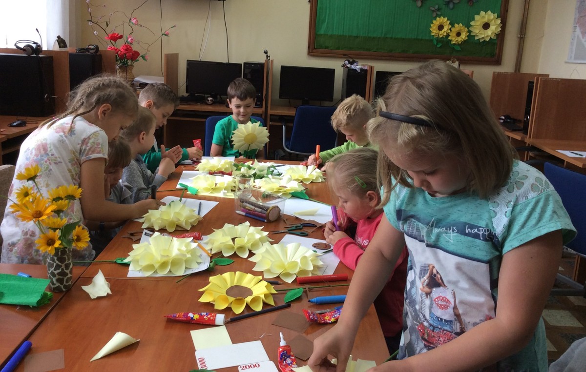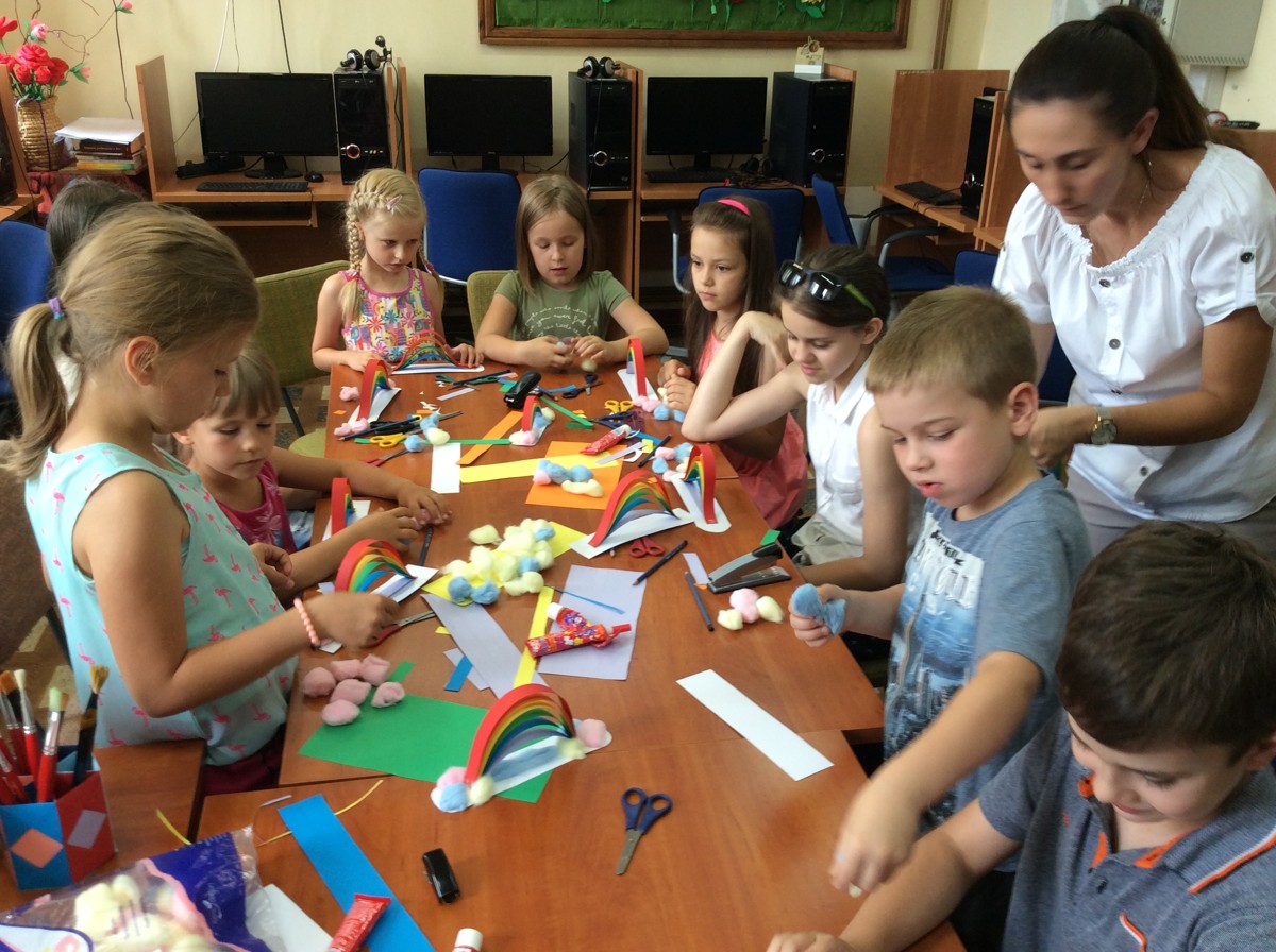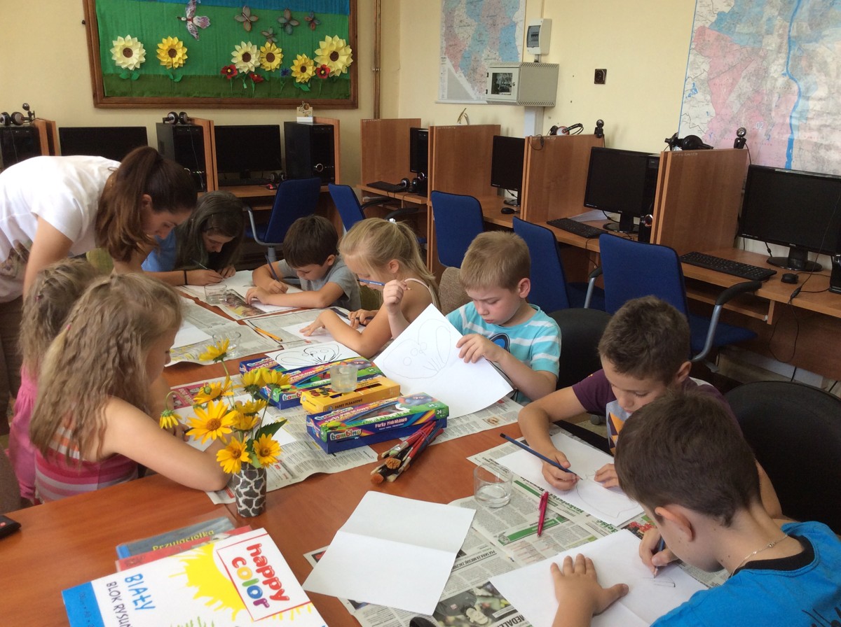 Zajęcia odbywały się w Gminnej Bibliotece Publicznej w Czerniewicach dwa razy w tygodniu od 13 do 27 lipca 2017 r. Celem spotkań było zorganizowanie czasu wolnego w sposób bezpieczny, ciekawy i pożyteczny. Biblioteka przygotowała różnorodne zajęcia, w tym edukacyjne z książką i zasad bezpieczeństwa w nternecie, warsztaty plastyczne oraz gry i zabawy. Motywem przewodnim w zajęciach plastycznych były kolory lata. W trakcie zajęć dzieci malowały motyle sposobem lustrzanym. Powstały piękne słoneczniki, symbole słońca oraz kolorowe motyle z rolek po papierze toaletowym i ptaki z serwetek. Tegoroczne lato w bibliotece było bardzo kolorowe. Dzieci chętnie z wielkim zapałem malowały zarówno indywidualnie jak i zespołowo. Prace wspólnie wykonane można podziwiać w bibliotece, pozostałe zostały zabrane przez uczestników. W domach na dziecięcych biurkach pojawiły kolorowe przyborniki, również wykonane samodzielnie. Każde spotkanie kończyło się grą na komputerach i tabletach. Nie zabrakło też słodkiego poczęstunku. Na zakończenie wszyscy otrzymali dyplomy i słodki upominek. Zajęcia w bibliotece były okazją do zdobywania nowych doświadczeń, nawiązania nowych kontaktów oraz fajnej zabawy. Wszystkim dzieciom dziękujemy za aktywny udział, ciekawe pomysły i radość wniesioną w nasze spotkania.