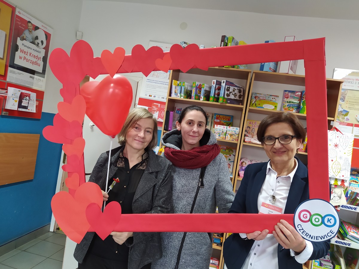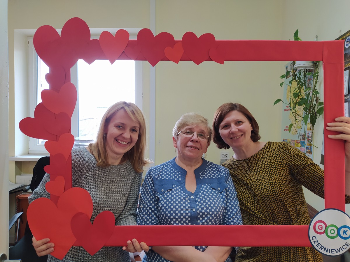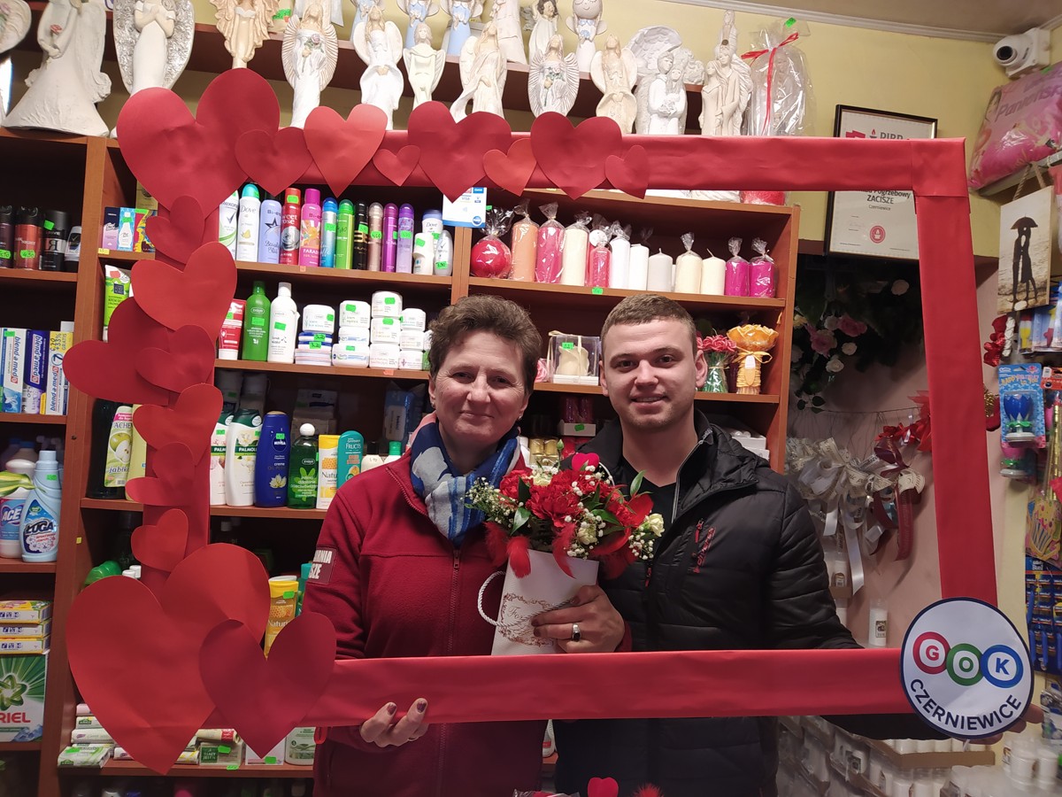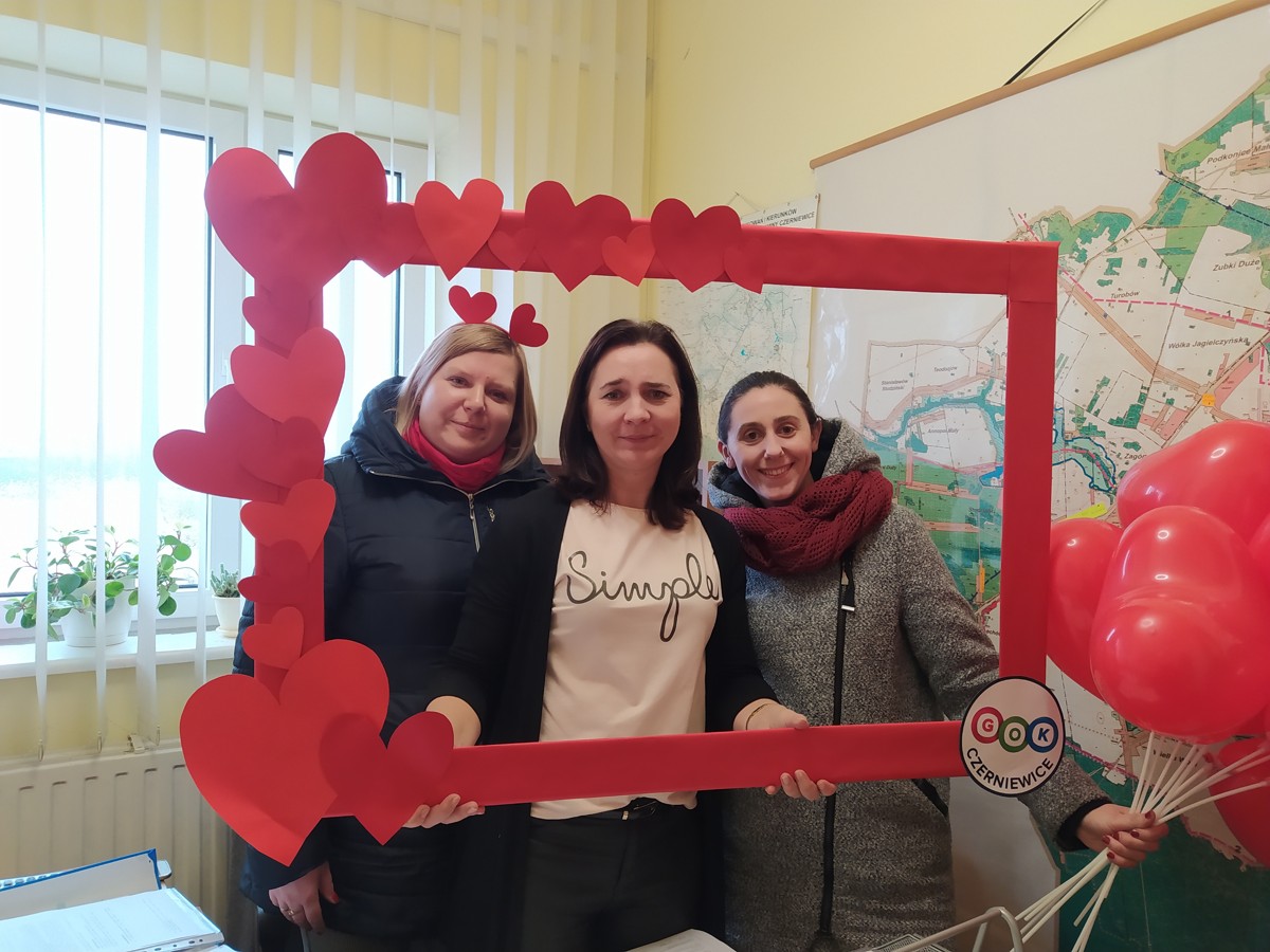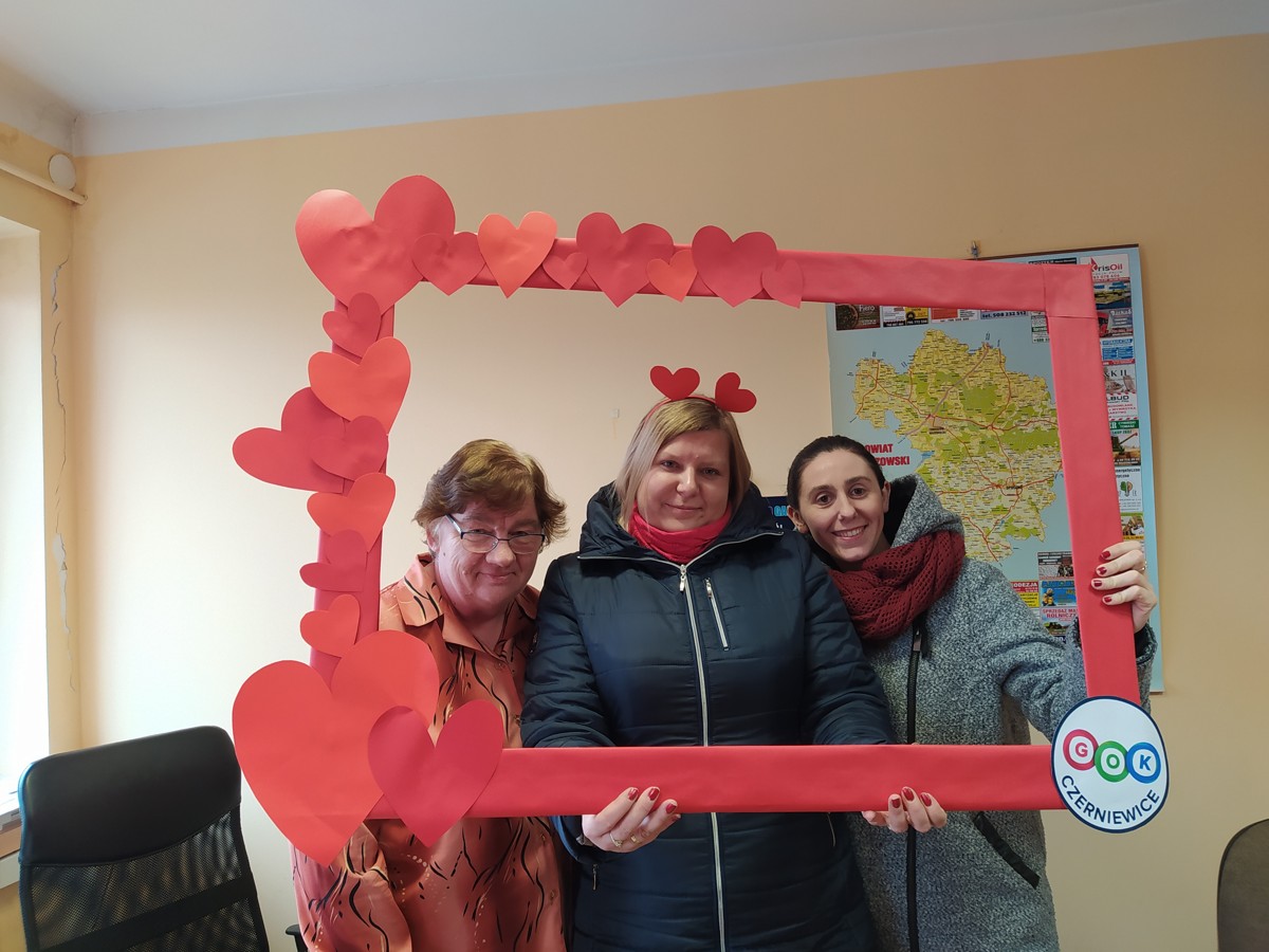 Gminny Ośrodek Kultury w tym roku zaskoczył mieszkańców Czerniewic. Z balonami w kształcie serc, czerwonymi lizakami i walentynkową ramką do zdjęć pracownicy ośrodka przemierzali ulice gminy. Słodkimi upominkami częstowali wszystkich przechodniów oraz zapraszali do zrobienia pamiątkowego zdjęcia. Odwiedzili też Urząd Gminy, Policję, GOPS, Pocztę, GOZ, aptekę, kwiaciarnię, lokalne sklepy i przedsiębiorców. Walentynkowa akcja bardzo spodobała się wszystkim mieszkańcom, którzy odwdzięczali się dobrym słowem i ciepłym uśmiechem.