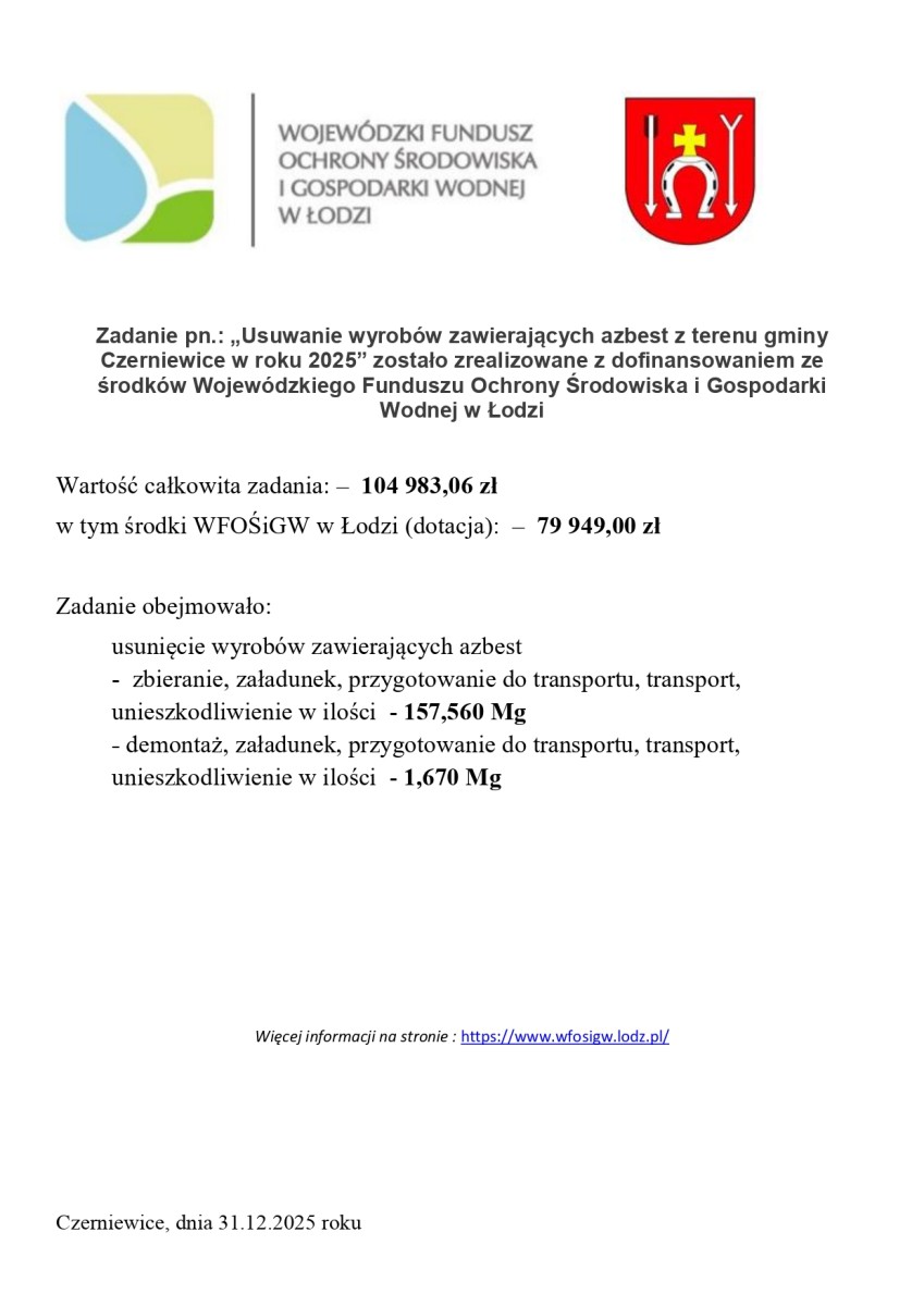 Usuwanie wyrobów zawierających azbest z terenu gminy Czerniewice w 2025 roku